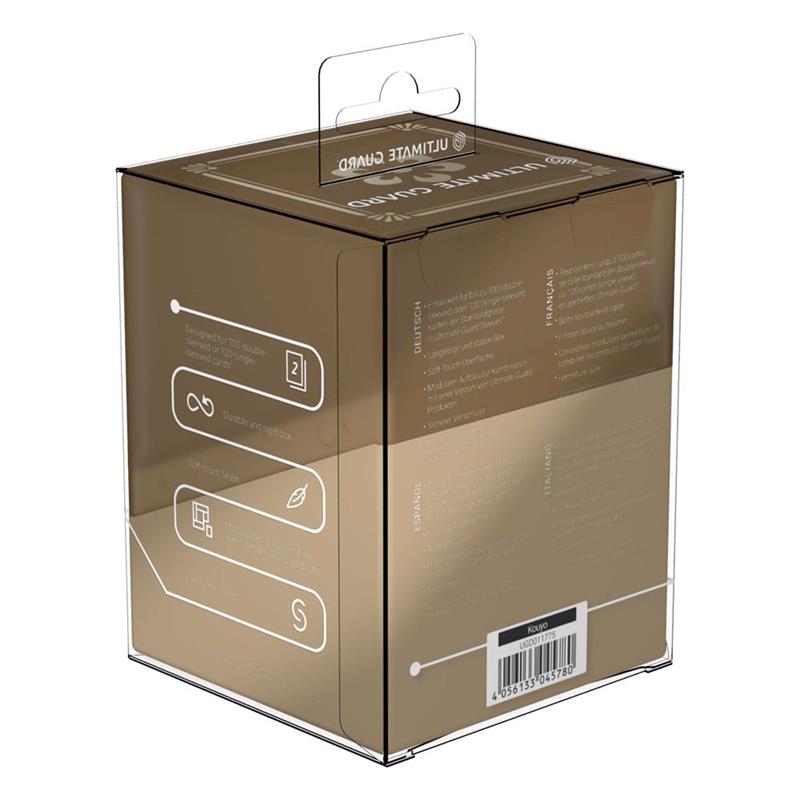 The Boulder 100+ from Ultimate Guard's "Katana: The Shogun's Journey" series is a durable and reliable deck box featuring our popular soft-touch surface. Despite its secure closure, the Boulder 100+ is easy and convenient to open and holds 100 double-sleeved cards in Ultimate Guard sleeves* from trading card games like Magic: The Gathering, Pokémon, Lorcana, Flesh and Blood, Yu-Gi-Oh!, and One Piece. Designed to combine with all Ultimate Guard mass storage boxes, these Boulder 100+ deck boxes perfectly fit into the Arkhive 400+ Xenoskin from the same series.