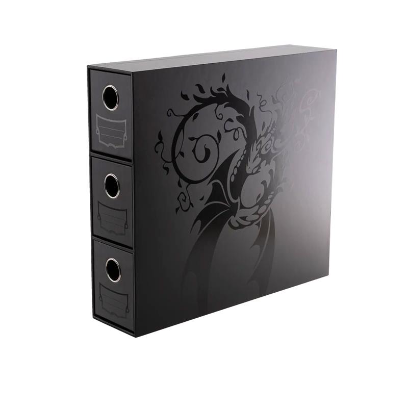 Each of the three drawers can hold 570+ single-sleeved cards, 7 Dragon Shield sleeve boxes or 20 Cube Shells. The drawers each have a foam divider that can be used to secure your collection. If you want extra dividers to organize your Fortress, you can find them here.