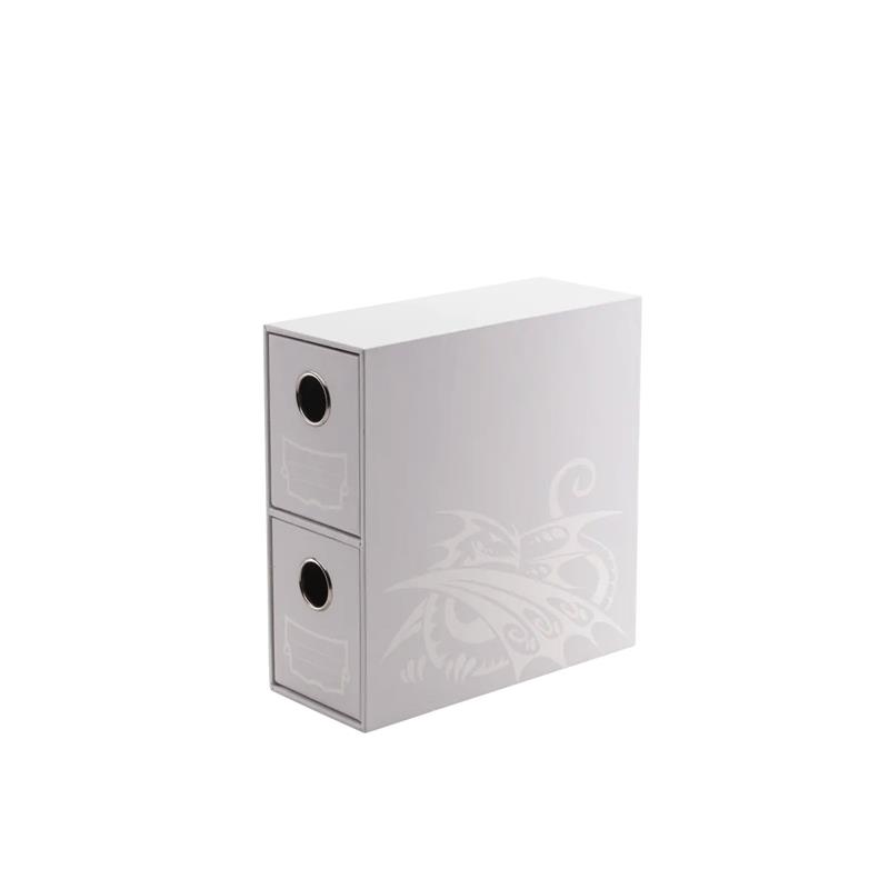 Fortress Card Drawers measure 86×215×212mm and each drawer has an inner dimension of 71x96x193mm. Fortress is made of rigid cardboard and coated with a scratch-minimizing surface.