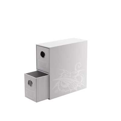 Each of the two drawers can hold 295+ single-sleeved cards, 4 Dragon Shield sleeve boxes or 11 Cube Shells. The drawers each have a foam divider that can be used to secure your collection. If you want extra dividers to organize your Fortress, you can find them here.