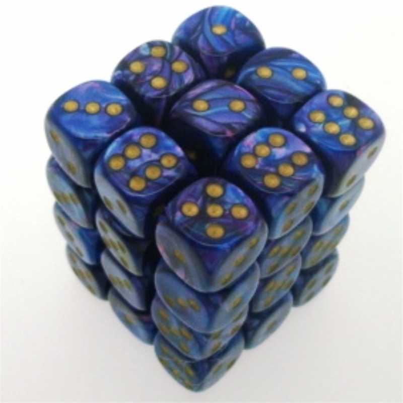 27897 Set 36 Dadi D6 (12 mm) Lustrous Viola/Oro