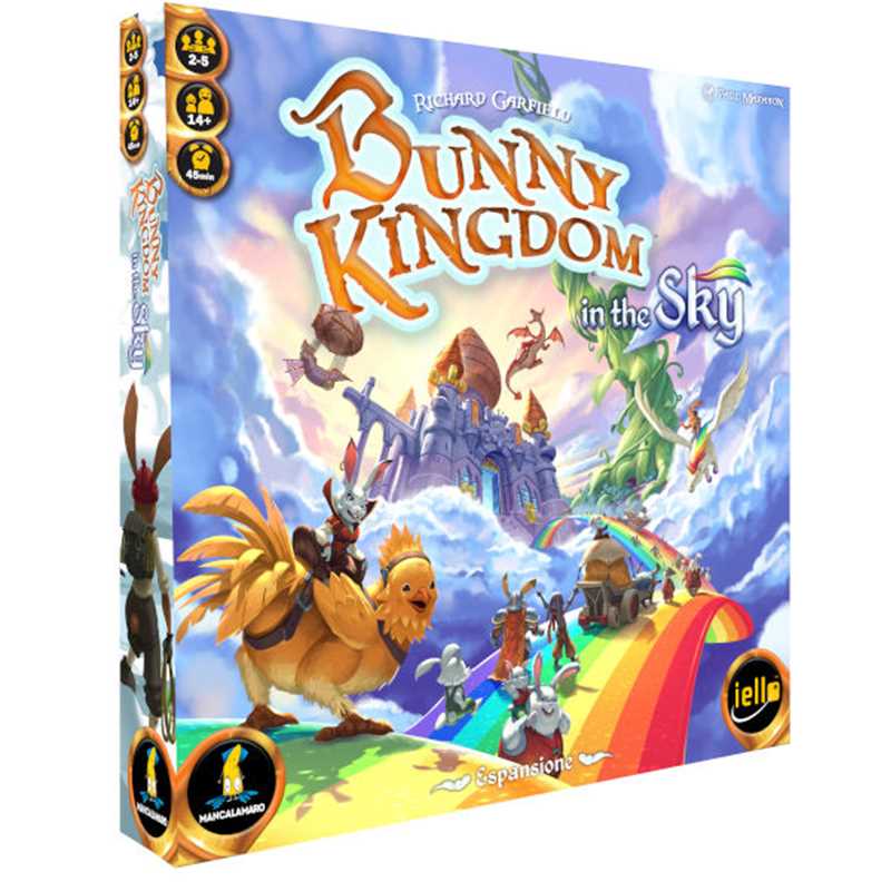 Since General Baffayette spotted a mysterious Great Cloud from his airship, the New World is no longer the only mysterious land waiting to be conquered. Now, the King of Bunnies has added new exploration missions. Returning loaded with Wonderful Resources could help you gain the coveted title of "Big Ears." But that's not all... the colonies of Bunnies opening up to the New World are organizing into Districts, and trade has begun to flourish… Play your cards well and take advantage of the situation! Expand the magical world of Bunny Kingdom by adding the fifth player, a new board, new wonderful resources, new cities, and new missions.