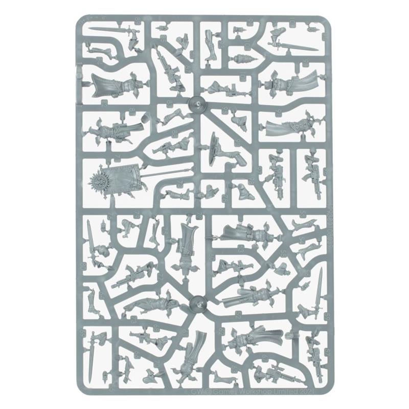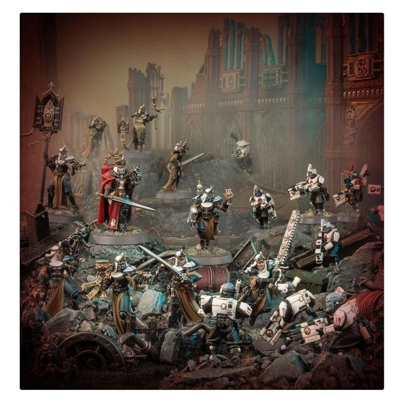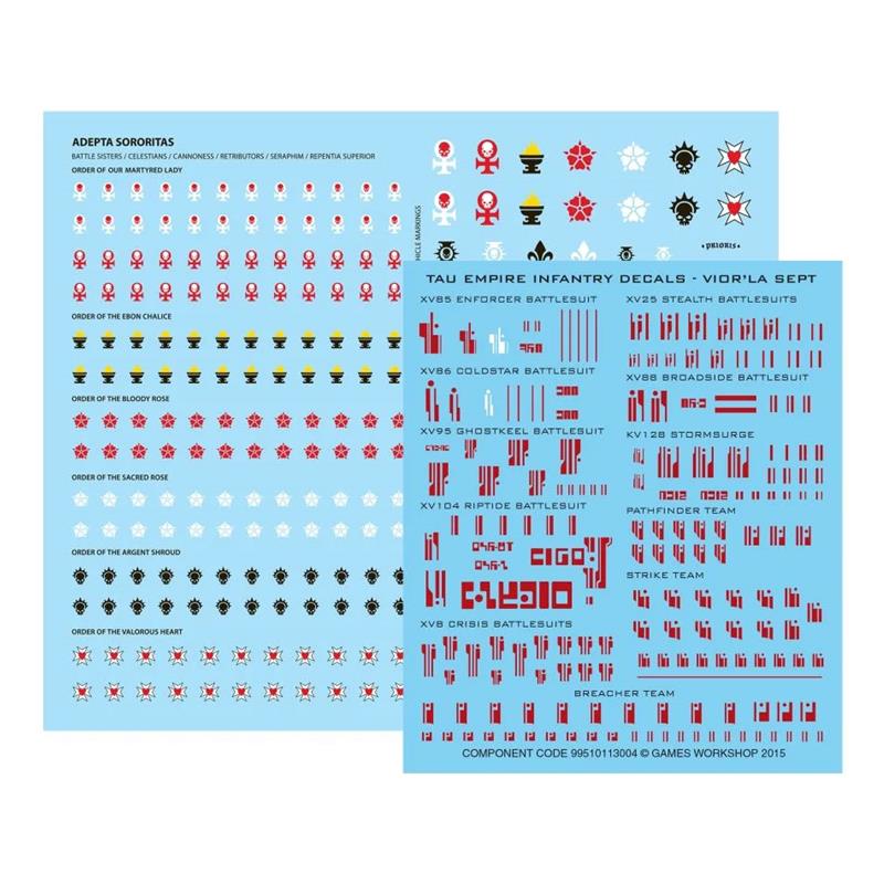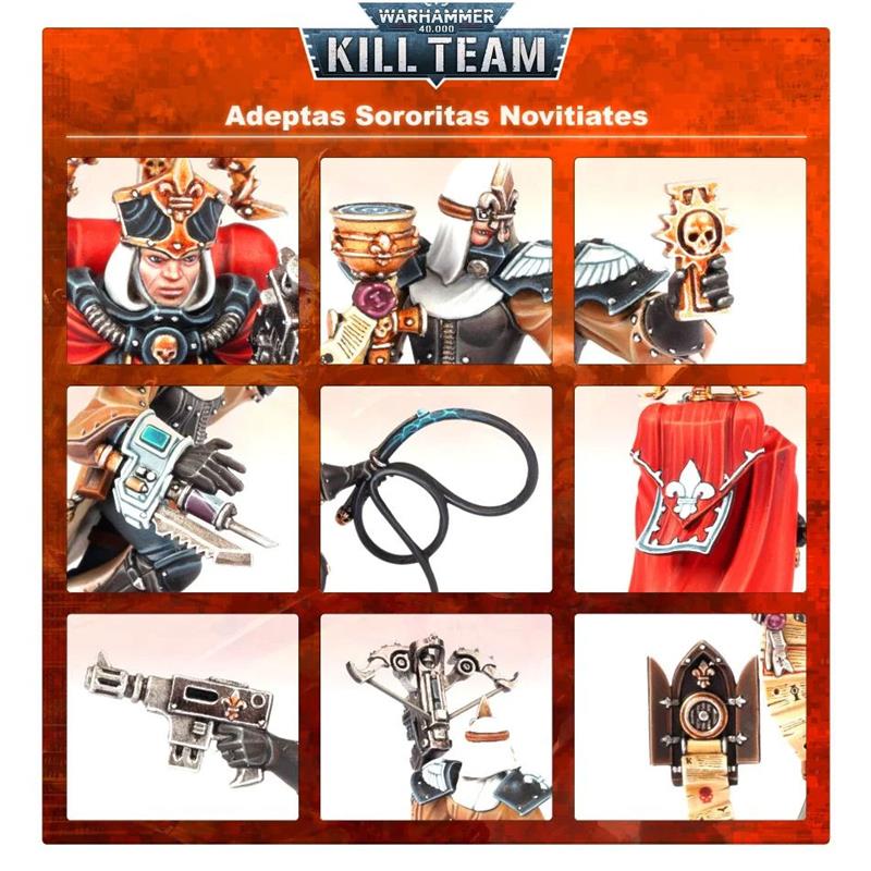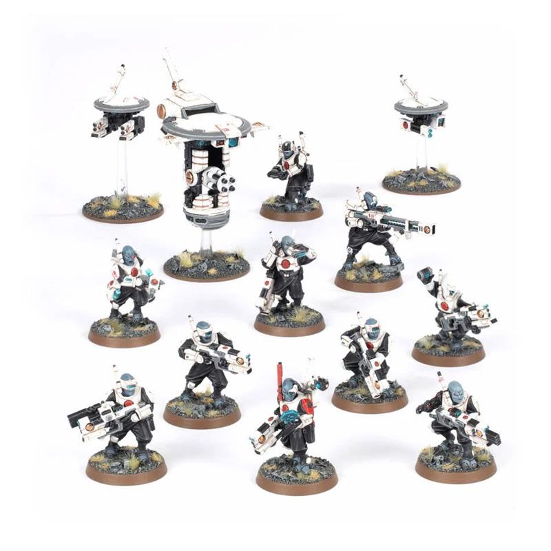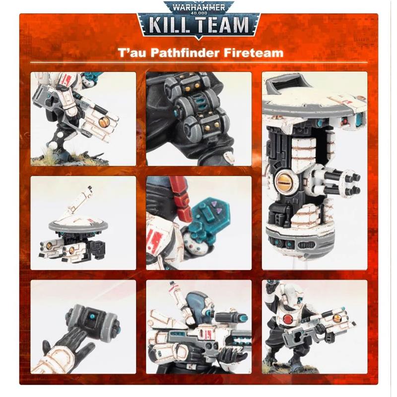 23 Citadel Miniatures: two complete kill teams, on one side the Novice Team of the Adepta Sororitas, and on the other the T'au Pathfinders. Both offer a wide range of customization and assembly options; you can make your kill team unique, with models that can be assembled as different agents. The two kill teams are accompanied by a transfer sheet, with which you can give your models a wide selection of emblems and icons.