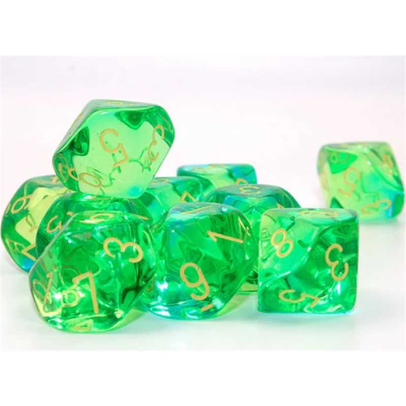 26266 Gemini Translucent Green-Teal/yellow Set of 10 d10s