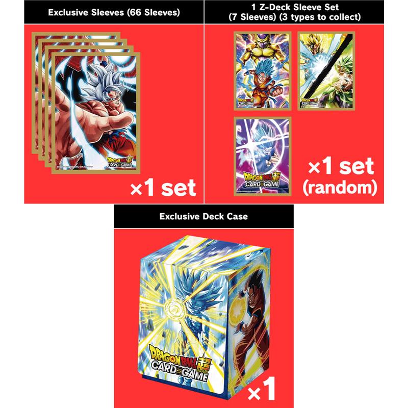 x5 -Alternative Art Card ×1 (3 types in total) -Exclusive Deck Case ×1 -Exclusive Sleeves ×66 -Exclusive Side Deck Sleeves (3 types in total) |