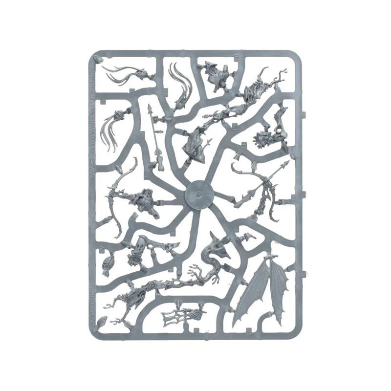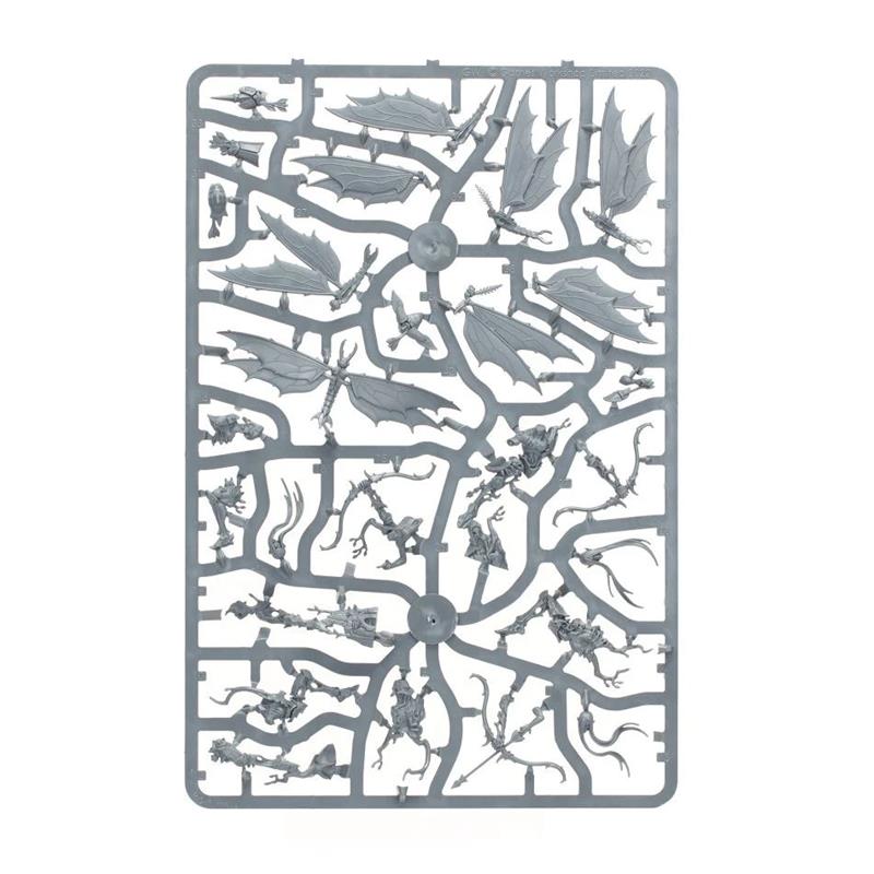 With this multi-part plastic kit, you can assemble five Serpentine Winged Archers, a fast skirmishing unit for Sylvaneth armies. Each Archer has a unique pose and appearance, and one can be assembled as a Swift Wing Scion with a diadem and an ornate cloak. This set includes five Spirits of the Zephyr and five different quiver insects, and each can be paired with any of the Archer bodies, allowing you to mix them for a wide variety of appearances in your force.