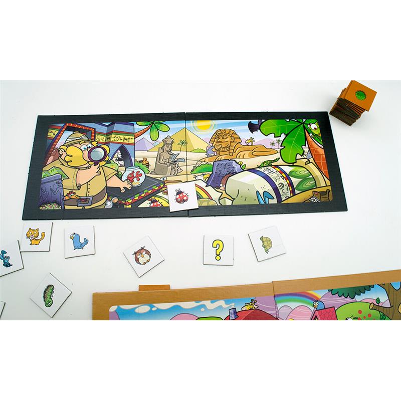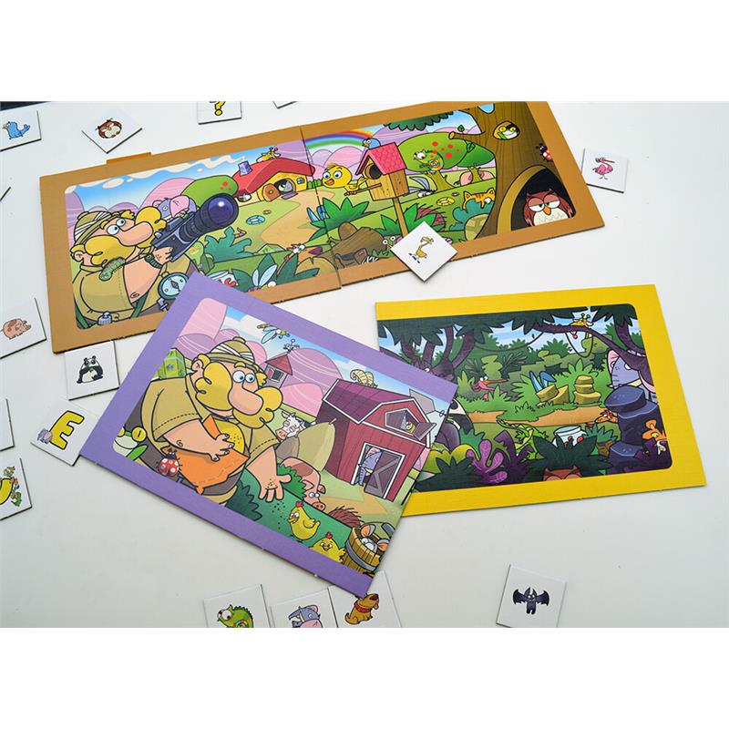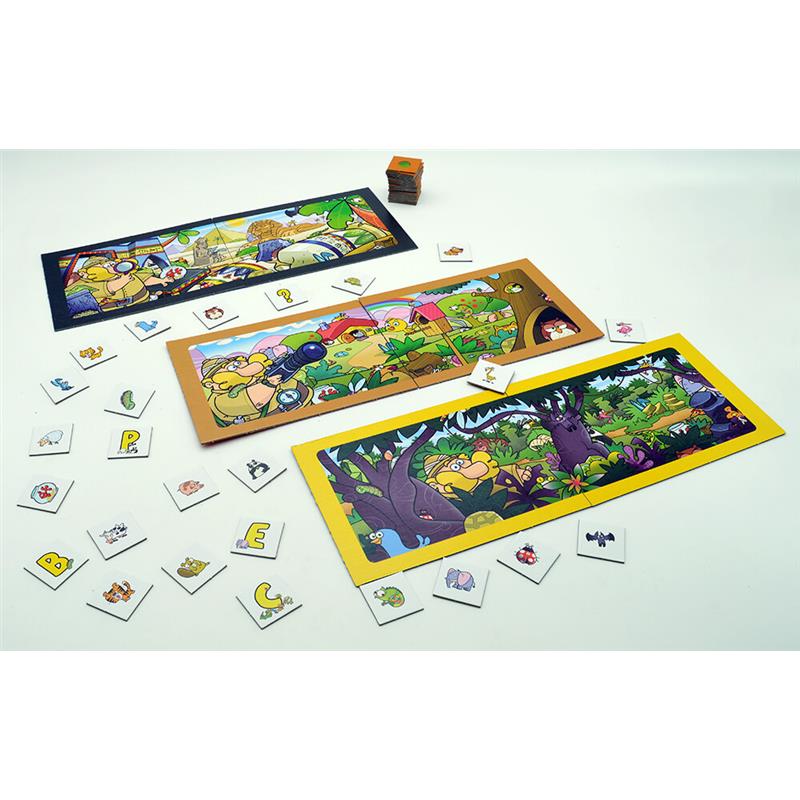 Six settings and more than thirty animals await you in this family exploration game. Sharpen your eyesight and be the first to find the right animal. A game that stimulates observation and helps learn the alphabet in a simple and engaging way.