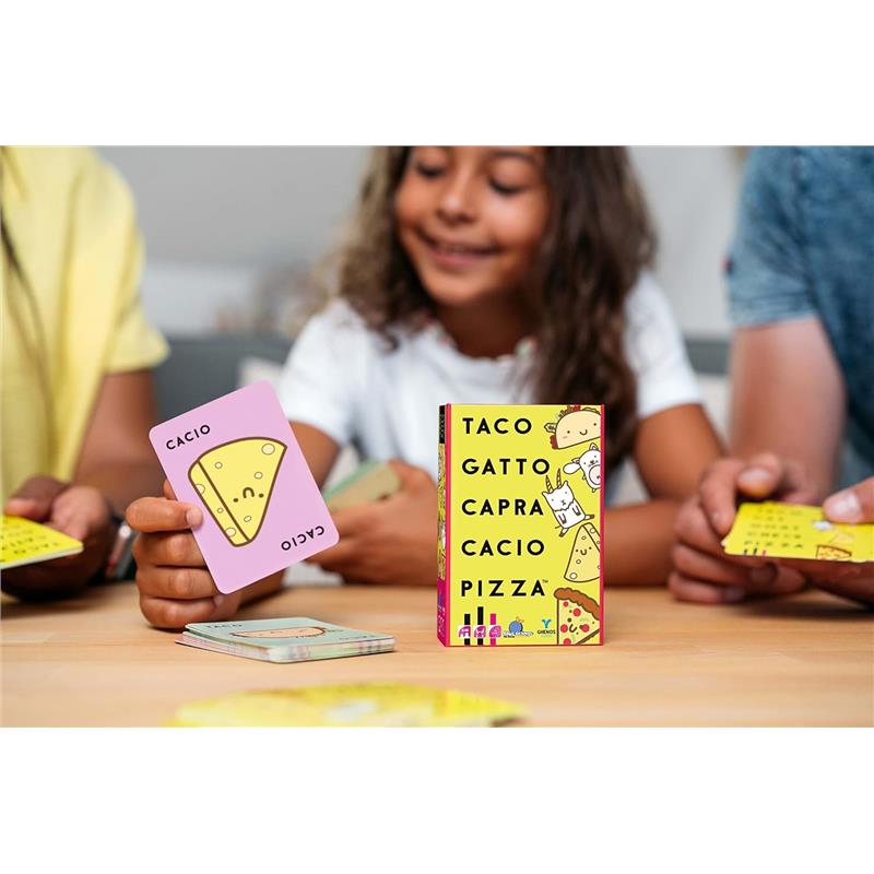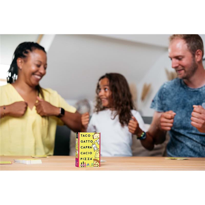 • Taco Cat Goat Cheese Pizza! Keep these 5 words firmly in mind. Does a card with the declared word appear? Quickly hit the center pile with your hand. The last one collects everything!