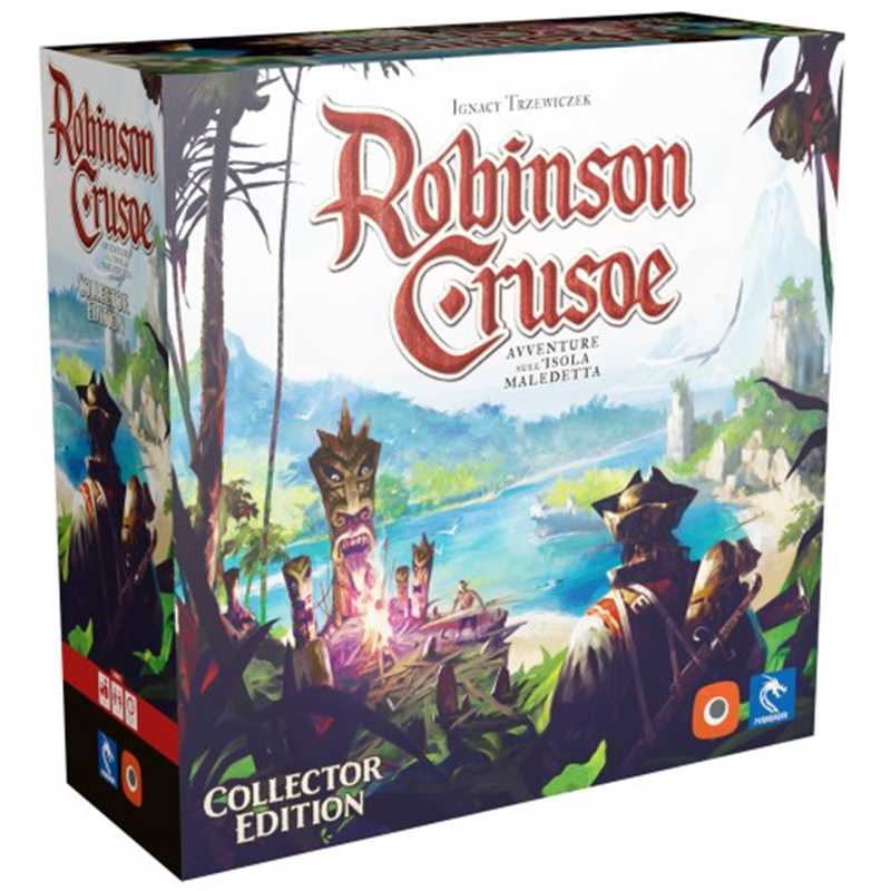 It is a cooperative game set in the context of the literary classic by Daniel Defoe: a group of shipwrecked castaways lands on a deserted island and must do everything to survive. This means finding shelter, procuring food, facing dangers, and building the tools necessary to do so effectively.