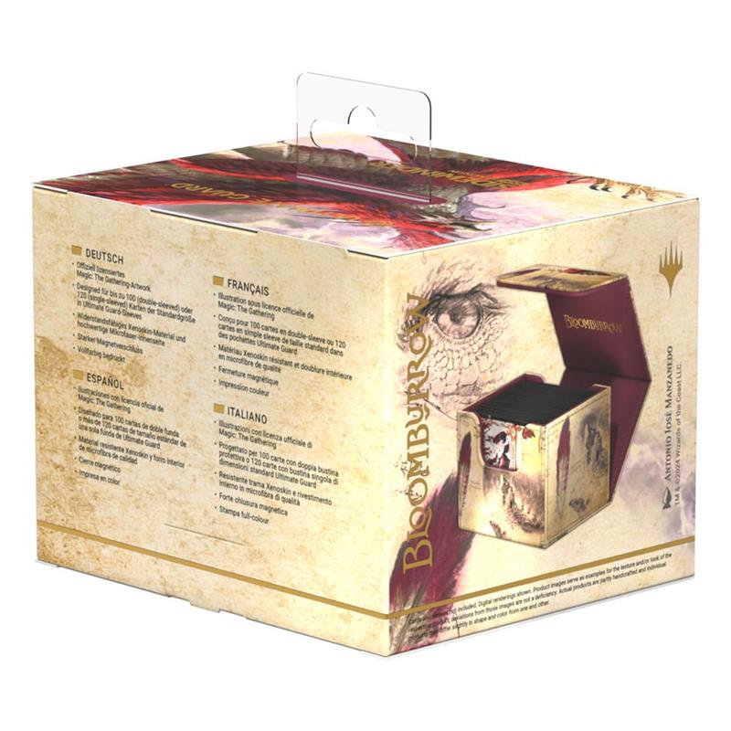 Explore the ferocious side of Bloomburrow! Our Sidewinder 100+ Xenoskin are made of full color printed, resistant Xenoskin material and feature the officially licensed Magic: The Gathering artworks of the epic Calamity Beasts from Bloomburrow in the beautiful "Borderless Field Notes" style. The deck boxes hold up to 100 (double-sleeved) or 120 (single-sleeved) cards. They are the perfect choice for safely storing cards and decks from all popular TCGs thanks to the strong magnetic closure and the microfiber inner lining.