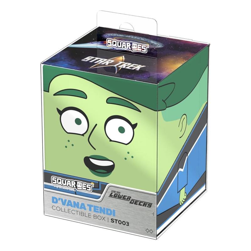 Collectible box for storing TCG decks, tabletop gaming accessories, and/or collectibles. The D'Vana Tendi Squaroe from the Star Trek: Lower Decks™ edition holds up to 100 cards in double protective sleeves if used as a deck box. Squaroes are made from 78% renewable resources and fit perfectly into the separately available Collectors Case.