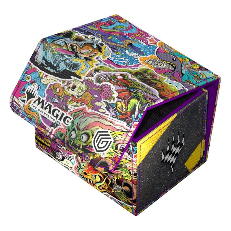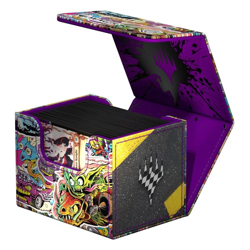 The revved-up racers from Magic: The Gatherings's Aetherdrift are waiting to hit the gas on the Special Edition Sidewinder 100+ Xenoskin Revved-Up Racers! The stickerbomb-style deck box, with officially licensed MTG artwork made of high-quality Xenoskin material, holds up to 100 (double-sleeved) or 120 (single-sleeved) cards and is a safe place to store decks and trading cards thanks to its strong magnetic closure and microfiber inner lining.