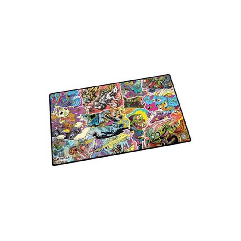 The revved-up racers from Magic: The Gatherings's Aetherdrift are waiting to hit the gas on the Special Edition Play-Mat Revved-Up Racers! The Play-Mat in stickerbomb style, with officially licensed MTG artwork in the standard size 61x35cm, improves the gaming experience and protects cards and accessories during gameplay with its cushioned top and anti-slip underside. The Play-Mat comes with a high-quality stitched edge.