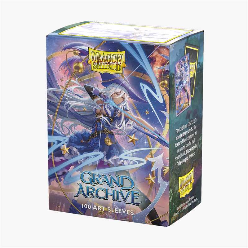 The sleeves come in a reusable cardboard box containing 100 standard size sleeves for trading cards measuring up to 63x88 mm's (2½"x3½"). Great for TCGs like Magic™, Pokémon™, Lorcana™ and – of course – Grand Archive™!