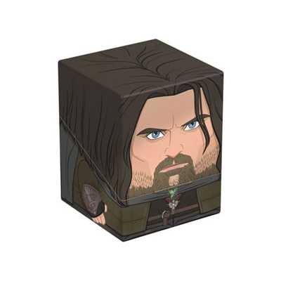 Collectible box for storing TCG decks, tabletop gaming accessories, and/or collectibles. The Aragorn Squaroe from the The Lord of the Rings edition holds up to 100 cards in double protective sleeves if used as a deck box. Squaroes are made from 78% renewable resources and fit perfectly into the separately available Collectors Case.