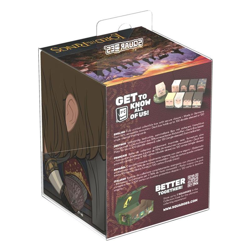 Collectible box for storing TCG decks, tabletop gaming accessories, and/or collectibles. The Boromir Squaroe from the The Lord of the Rings edition holds up to 100 cards in double protective sleeves if used as a deck box. Squaroes are made from 78% renewable resources and fit perfectly into the separately available Collectors Case.