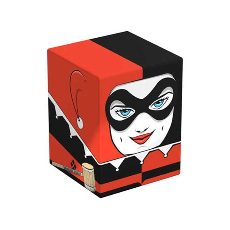 Collectible box for storing TCG decks, tabletop gaming accessories, and/or collectibles. The Harley Quinn Squaroe from the Batman: Gotham City edition holds up to 100 cards in double protective sleeves if used as a deck box. Squaroes are made from 78% renewable resources and fit perfectly into the separately available Collectors Case.