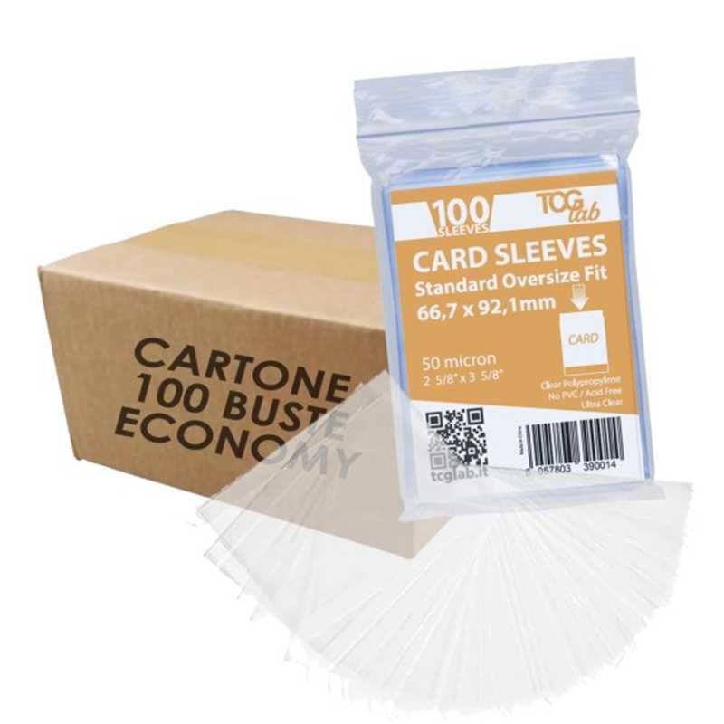 TcgLab Cartone da 100 Standard Sleeves Economy - Ultra Clear - Oversize 50 micron