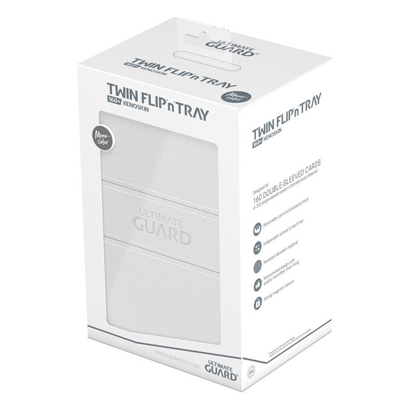 One box, two card decks, and additional accessory tray: Our Twin Flip'n'Tray 160+ offers all the features a great deck box needs. Doubling the size of our classic Flip'n'Tray 80+, this box is the bigger sibling everyone is looking for. The Twin Flip'n'Tray 160+ can hold 160 double-sleeved or 200 single-sleeved standard sized cards*.