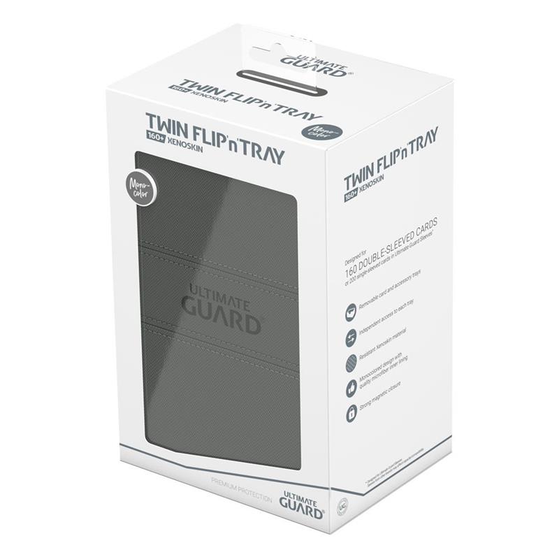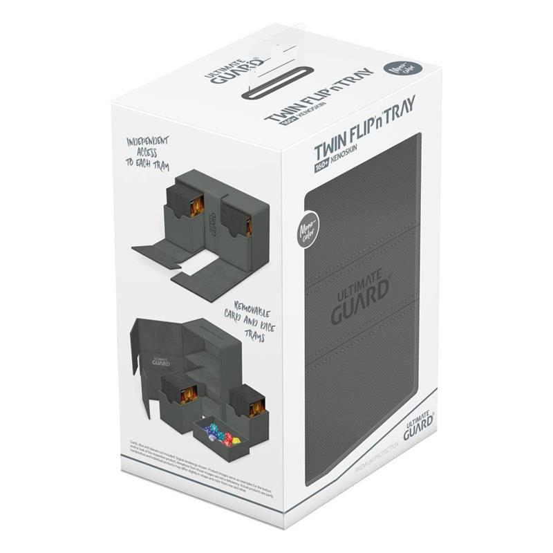 One box, two card decks, and additional accessory tray: Our Twin Flip'n'Tray 160+ offers all the features a great deck box needs. Doubling the size of our classic Flip'n'Tray 80+, this box is the bigger sibling everyone is looking for. The Twin Flip'n'Tray 160+ can hold 160 double-sleeved or 200 single-sleeved standard sized cards*.