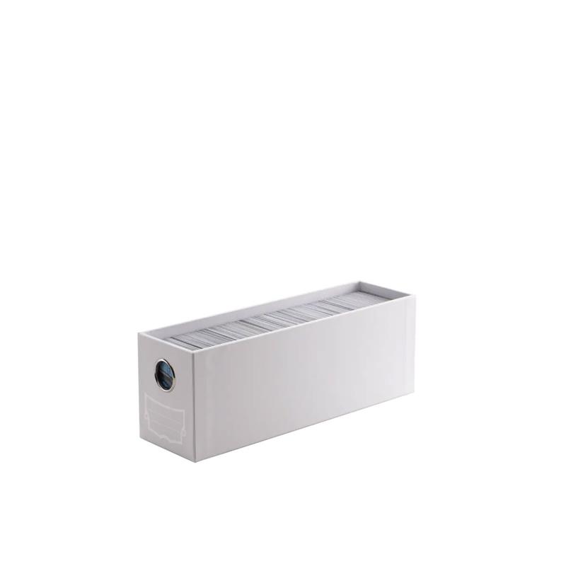 Fortress Card Drawer’s outside measures 86×109×283mm and the drawer has an inner dimension of 71x96x274mm. Fortress is made of rigid cardboard and coated with a scratch-minimizing surface.