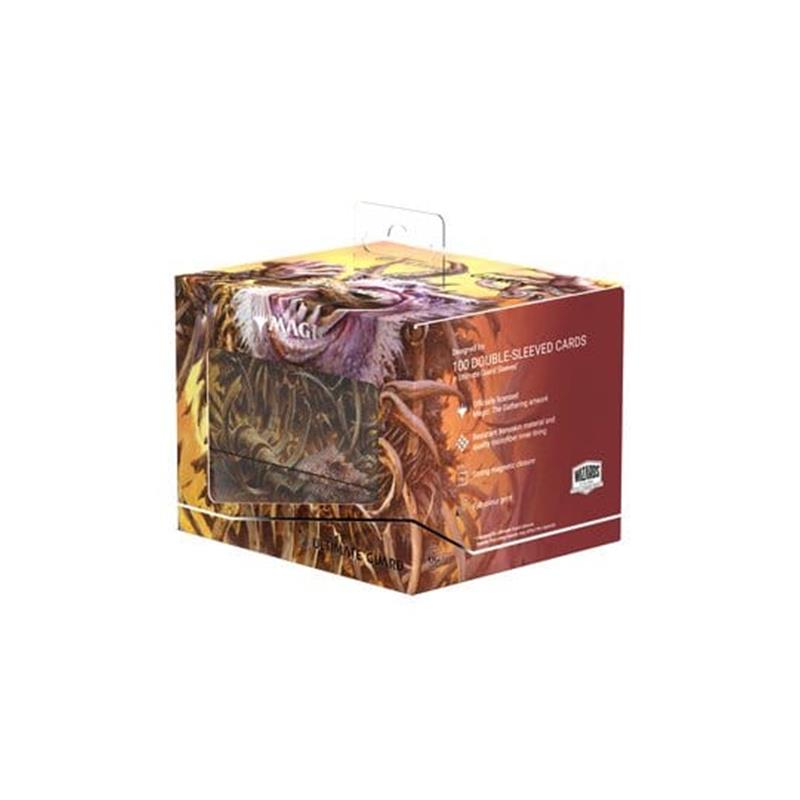 Ultimate Guard's Sidewinder 100+ Xenoskin is a premium Magic: The Gathering deck box offering exceptional card protection with its durable Xenoskin material, microfiber inner lining, and strong magnetic closure—all while providing easy and convenient access to the cards inside. With space for 100 double-sleeved cards in Ultimate Guard sleeves* and printed with officially licensed artwork from Magic: The Gathering's "Lorwyn Eclipsed" set, the Sidewinder 100+ Xenoskin is the perfect MTG deck box for all Magic formats (Commander/EDH, Modern, Standard, etc.). Designed to combine with Ultimate Guard's Omnihive, Superhive, and Smarthive mass storage boxes.The Sidewinder 100+ made from durable Xenoskin material holds up to 100 double-sleeved cards*, which are kept secure in the deck box thanks to a strong magnetic closure and soft microfiber inner lining. The durable, high-quality Xenoskin surface of the Sidewinder is printed in full color with officially licensed artwork from Magic: The Gathering's "Lorwyn Eclipsed" set.