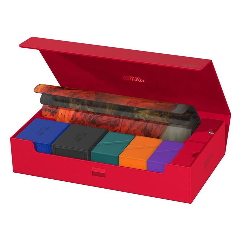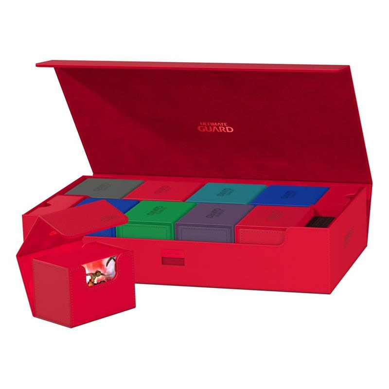 Introducing the new Omnihive 1000+! The ultimate spacious and flexible box for storing large collections. This box can hold more than 1000 double- sleeved cards or carry multiple decks and/or Play-Mats plus other Ultimate Guard products like the Sidewinder 133+. Two removable, magnetic, adjustable and stackable trays make this box unique: it's adaptable for all kinds of games and formats and enables multiple different ways of storing and using your collection.