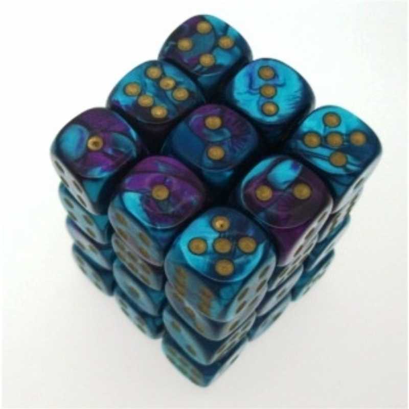 26849 Set 36 Dadi D6 (12mm) Purple-Teal/gold