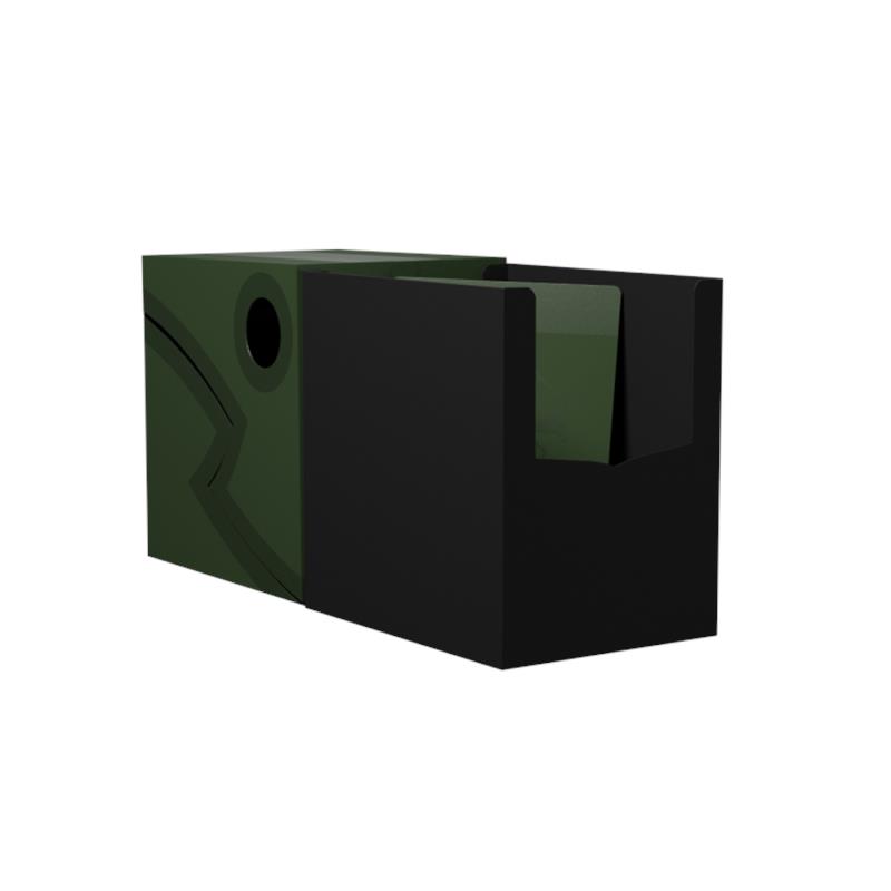 The perfect commander deck box! The Dragon Shield Double Shell is a sturdy deck box with two layers of protection all the way around. The lid wraps around the box for a secure closure or can be set to stay open for easy access to cards. Cube Shells will fit inside. The Double Shell fits inside large Nest boxes and Magic Carpets. Each Double Shell has a writing field on top for personalization and comes with a divider.