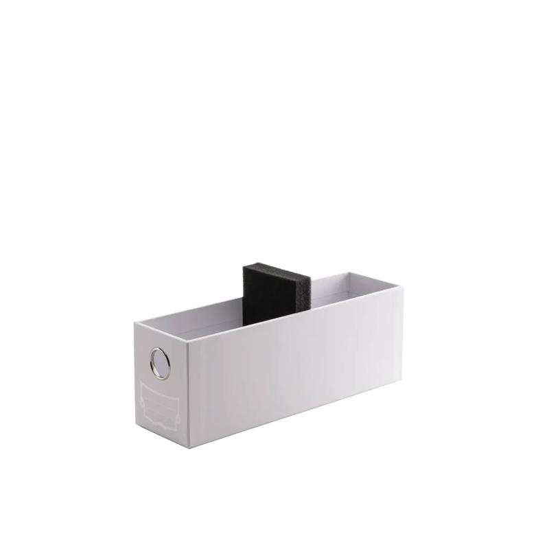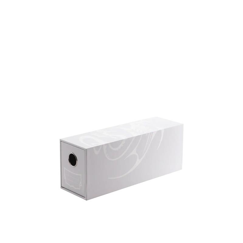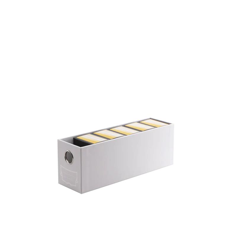 Fortress Card Drawer’s outside measures 86×109×283mm and the drawer has an inner dimension of 71x96x274mm. Fortress is made of rigid cardboard and coated with a scratch-minimizing surface.