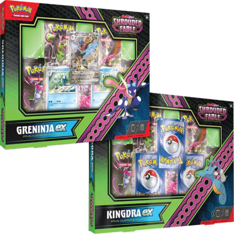 The special illustration collection Kingdra-ex or Greninja-ex from the Scarlet and Violet - Fairy Tale Secret expansion of the Pokémon TCG contains: